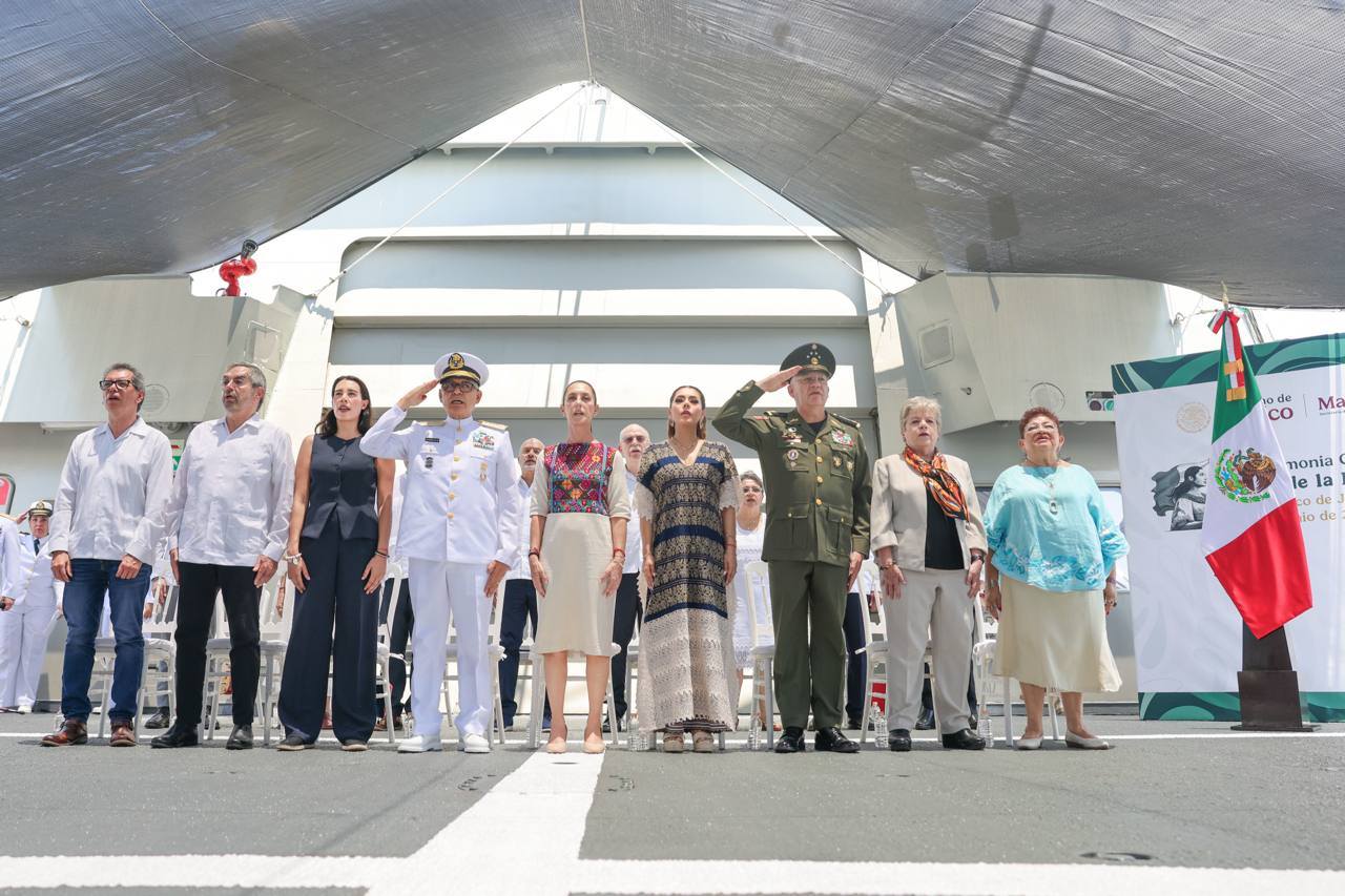 La gobernadora Evelyn Salgado Pineda y la presidenta de México, Claudia Sheinbaum Pardo conmemoraron el aniversario del Día de la Marina Nacional, en donde se reconoció la labor de los hombres y mujeres de mar, pero también de quienes perdieron la vida en cumplimiento de su deber.