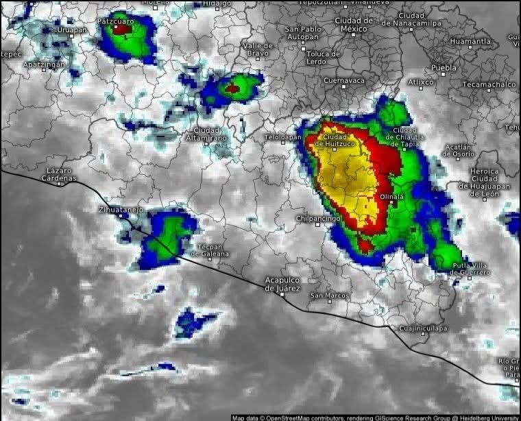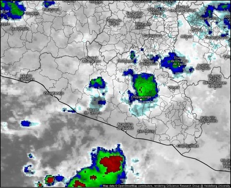 Para el transcurso de esta semana continuarán registrándose lluvias fuertes con puntuales intensas en varias zonas del estado de Guerrero, así como oleaje elevado en toda la franja costera del estado, debido a la presencia de varios sistemas meteorológicos que afectan al territorio nacional, informó la Secretaría de Gestión Integral de Riesgos y Protección Civil.