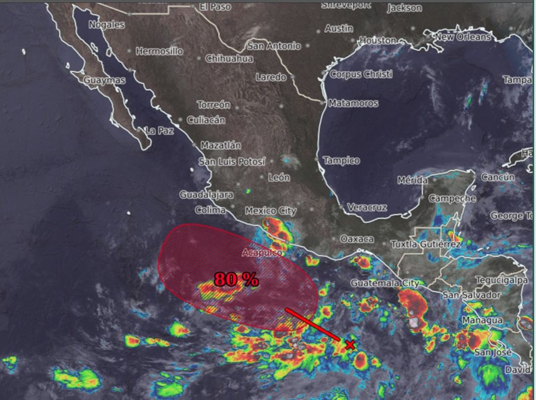 La Secretaría de Gestión Integral de Riesgos y Protección Civil Guerrero (SGIRPCGRO) informa a la población sobre una zona de baja presión al sur de Oaxaca, que incrementa 50 por ciento su probabilidad para desarrollo ciclónico en 48 horas.
