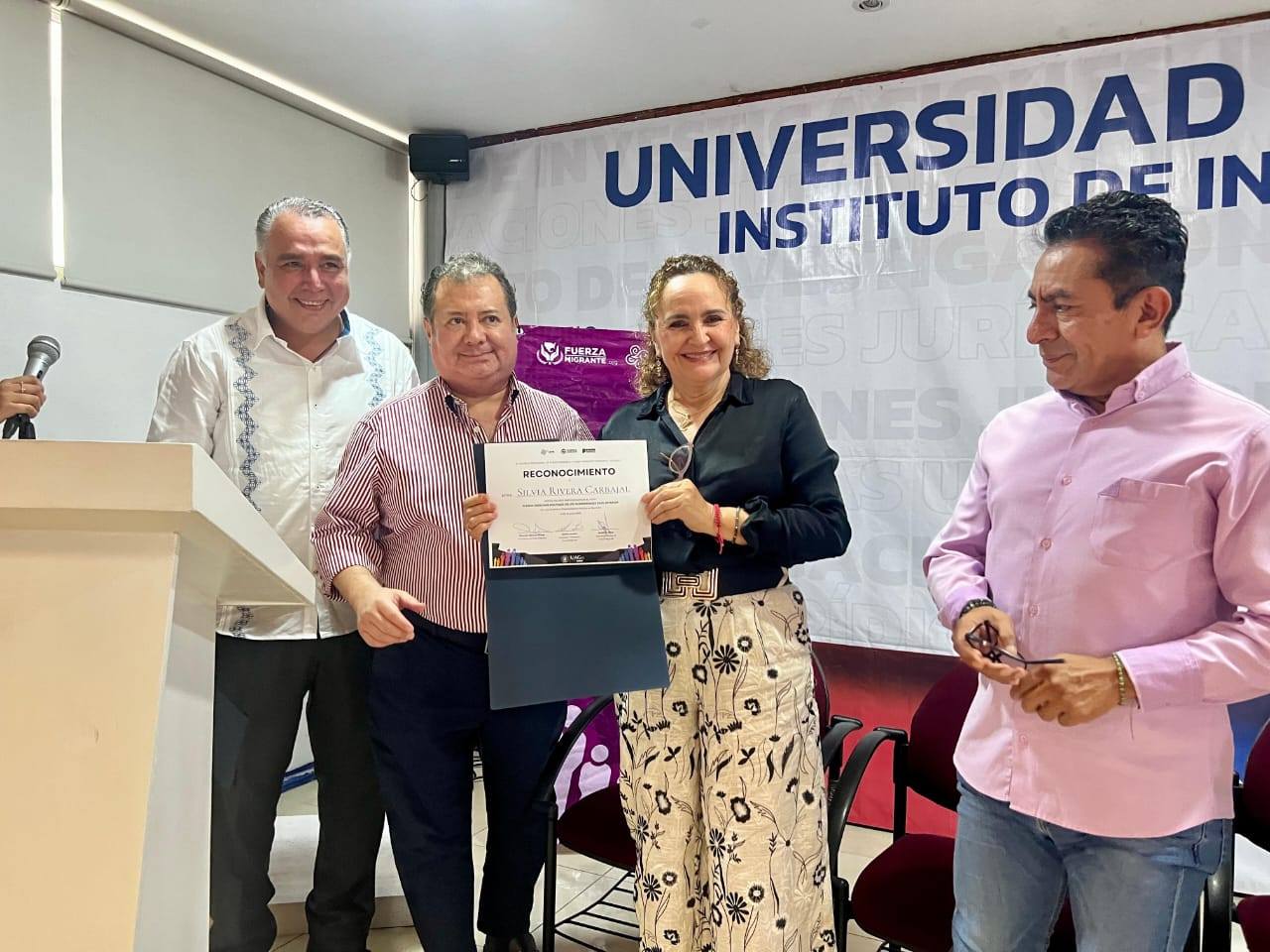 Con el firme compromiso de fortalecer los lazos con la comunidad guerrerense en el extranjero, la titular de la Secretaría de los Migrantes y Asuntos Internacionales (SEMAIGRO), Silvia Rivera Carbajal, participó como ponente en el foro “Plenos derechos políticos de los guerrerenses en el exterior”, realizado en la Facultad de Derecho de la Universidad Autónoma de Guerrero (UAGro).